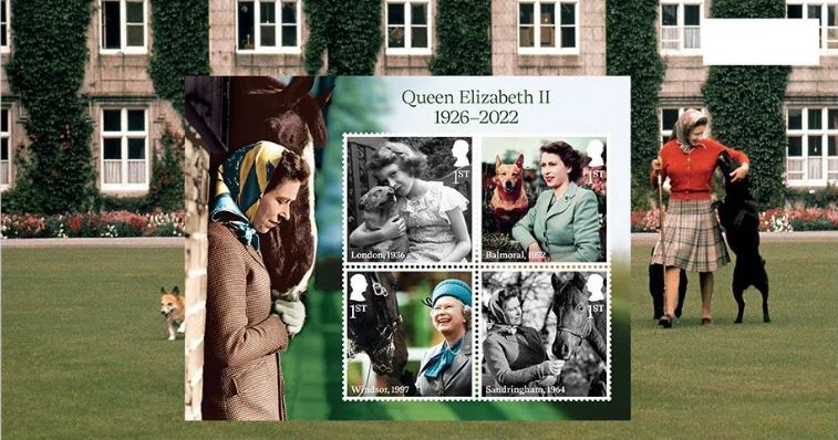 Uno de los elementos más atractivos para los coleccionistas temáticos es la hoja bloque que acompaña la emisión. En ella, se celebra el vínculo inquebrantable de la Reina con el mundo natural, especialmente su conocida pasión por los caballos y sus inseparables perros corgis. Estas cuatro estampillas de Primera Clase muestran a una Isabel II relajada, rodeada de sus animales en los terrenos de Windsor y Balmoral.